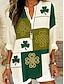 Blusa Feminina do Dia de São Patrício Linho Semelhante Leve Respirável Tunic Gráfico Trevo Vintage Estilosa Diária Manga Longa Decote em V Tops Regulares Roupas Diárias Estampa Verde Bege Verão
