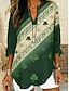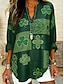 Dia de São Patrício Mulheres Camisa Social Túnica Imprimir Gráfico MOON Boêmia Vintage Diário Manga Longa Decote V Tops regulares Diário Feriado Azul Marinha Verão Primavera
