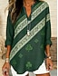 Mulheres Camisa Social Túnica Imprimir Gráfico Geométrica Vintage Diário à moda Manga Longa Decote V Tops regulares Diário Feriado Amarelo Verão Primavera
