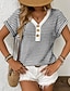 Mulheres Túnica Botões Tecido à moda Clássico Casual Manga Curta Gola Redonda Tops regulares Diário Preto Branco Amarelo Vermelho Laranja Verão Primavera Outono Inverno