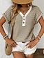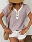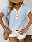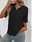 Mulheres Túnica Tecido à moda Clássico Casual Manga Curta Decote V Tops regulares Diário Azul Preto Vermelho Marron Bege Verão Primavera Outono Inverno