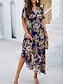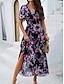 Mulheres Vestido midi Vestido de turno Elegante Normal Floral Gráfico Manga Curta Decote V Azul Amarelo Rosa Roxo Verão Primavera