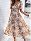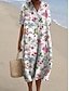 Mulheres Vestido midi Vestido de turno Casual Para Noite Ajuste Largo Floral Manga Curta Decote V Branco Laranja Verde Verão Primavera