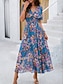 Mulheres Vestido Longo Vestido A Line Casual Ao ar livre Para Noite Ajuste Largo Floral Gráfico Meia Manga Decote V Azul Rosa Arco-íris Verão Primavera