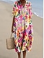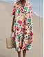 Mulheres Vestido Longo Vestido de turno Casual Diário Para Noite Ajuste Largo Floral Gráfico Manga Longa Decote V Rosa Escuro Roxo Laranja Bege Verão Primavera