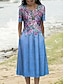 Mulheres Vestido midi Vestidos Para o Verão Vestido de turno Férias Casual Ao ar livre Ajuste Largo Floral Gráfico Geométrica Sem Manga Crewneck Azul cáqui Verão Primavera