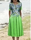 Mulheres Vestido Longo Vestido De Tricô Vestido casual Vestidos Para o Verão Vestido A Line Elegante Férias Casual Praia Normal Floral Gráfico Folha Manga Curta Decote V Vermelho Azul Roxo Verde