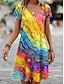 Mulheres Minivestido Vestido T shirt Vestido A Line Casual Diário Normal Gráfico Geométrica Abstrato Manga Curta Decote V Azul Amarelo Roxo Laranja Verão Primavera