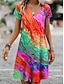 Mulheres Vestido no Joelho Vestidos Para o Verão Vestido T shirt Vestido A Line Férias Casual Boho Praia Normal Floral Gráfico Manga Curta Decote V Azul Rosa Vermelho Verde Verão Primavera