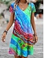 Mulheres Minivestido Vestido de turno Vestidos Para o Verão Férias Casual Boho Diário Praia Feriado Normal Gráfico Abstrato Sem Manga Pescoço Entalhado Azul Verde Escuro Roxo Verde Verão Primavera