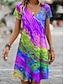 Mulheres Vestido Longo Vestidos Para o Verão Vestido A Line Vestido de decote Férias Casual Praia Para Noite Ajuste Largo Âmbar Gráfico Tintura Tie Dye Sem Manga Decote V Vermelho Roxo Claro Verão