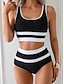 Maiô Feminino Tankini de 2 Peças Calcinhas de Bloco de Cores Controle de Barriga Cintura Alta Slim Costas Descobertas Roupas de Praia de Férias Listrado Decote U Sem Mangas