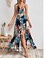 Mulheres Vestido Longo Vestido casual Vestido floral Vestido de decote Elegante Moda Moderno Ao ar livre Férias Para Noite Normal Floral Sem Manga Decote V Preto Branco Amarelo Vermelho Verão
