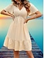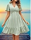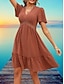 Mulheres Vestido no Joelho vestido de praia Vestido de renda Vestido casual Elegante Moda Moderno Ao ar livre Praia Férias Normal Tecido Manga Curta Decote V Castanho Avermelhado Verde Claro Damasco