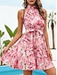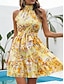 Mulheres Minivestido Vestido A Line Vestido floral Vestido decote halter Elegante Moda Moderno Ao ar livre Férias Para Noite Normal Floral Sem Manga Halter pescoço Azul Amarelo Rosa Verão Primavera