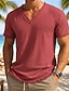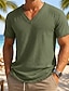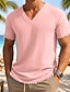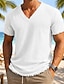 Homens T-shirt Camiseta de linho Manga Curta Decote V Verão Tecido Moda Designer Básico Macia Casual Praia Férias Azul Claro Branco Rosa Top Tee para Homens