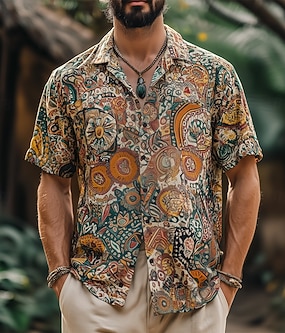 Homens Boho Índio Étnico Camisa Social Camisa havaiana camisa de botão Manga Curta Havaiana Férias Feriado Roupa de Praia Verão Primavera Aberto para a Lateral Impressão 3D camisas de colarinho