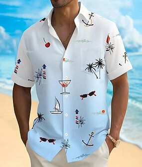 Homens Coqueiro Natureza e Paisagem Plantas Tropicais Camisa havaiana camisa de botão Camiseta Aloha Manga Curta Havaiana Férias Verão Primavera Aberto para a Lateral Impressão 3D camisas de