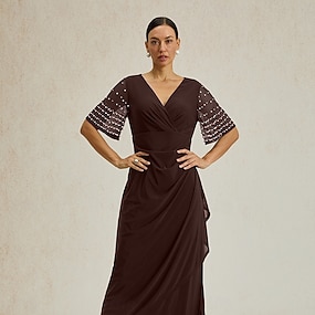 Mulheres Vestido Longo Vestido da bainha Elegante Festa de Noite Convidado do casamento Coquetel Normal Côr Sólida Manga Curta Decote V Vermelho