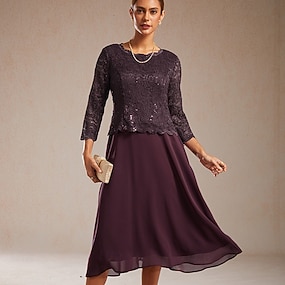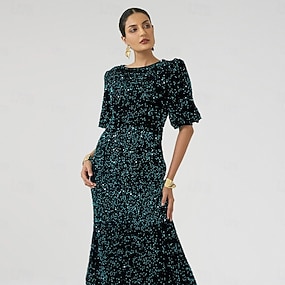 Mulheres Vestido midi Vestido da bainha Elegante Festa Casamento Lantejoula Manga Curta Gola Redonda Beringela
