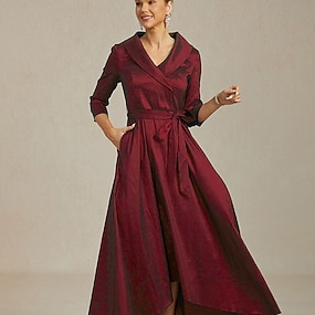 Mulheres Vestido Longo Vestido da bainha Elegante Festa de Noite Convidado do casamento gravata na frente Zip Up Bolsos Normal Côr Sólida Manga 3/4 Decote V Vermelho