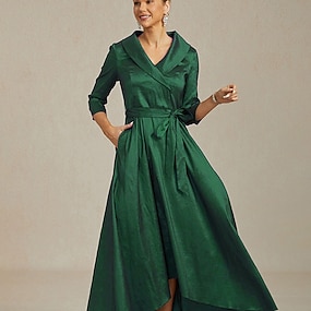 Mulheres Vestido Longo Vestido da bainha Elegante Côr Sólida Manga 3/4 Decote V Verde