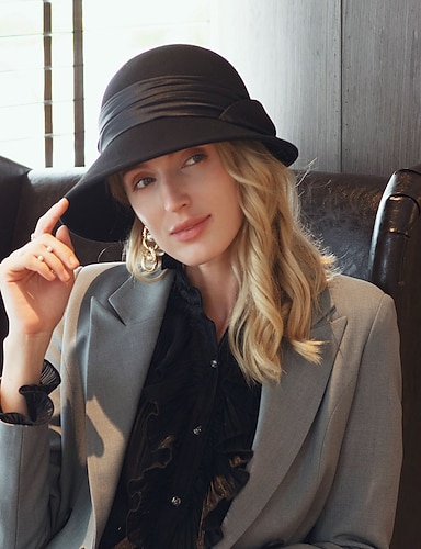 Chapéus 100% lã, estilo bowler/cloche, chapéu bucket, chapéu fedora, chapéu para festa de chá, coquetel, elegante, casamento, com laço, acessório de cabeça em cor lisa.