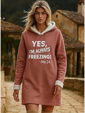 Mulheres Minivestido Vestido Atlético Casual Férias Casa Ano Novo Normal Gráfico Letra Manga Longa Com Capuz Rosa Outono Inverno
