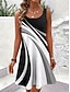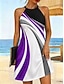 Mulheres Vestido no Joelho Vestidos Para o Verão Vestido A Line Férias Casual Estilo Praia Praia Feriado Normal Gráfico Geométrica Abstrato Sem Manga Decote U Azul Preto Roxo Verde Verão Primavera