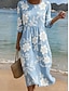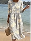 Mulheres Vestido midi Vestidos Para o Verão Vestido de verão Férias Casual Boho Feriado Ajuste Largo Floral Gráfico Meia Manga Gola Redonda Azul Amarelo Rosa Verão Primavera
