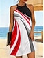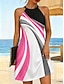 Mulheres Vestido no Joelho Vestido A Line Vestido de verão Férias Casual Normal Gráfico Geométrica Abstrato Sem Manga Halter pescoço Azul Rosa Vermelho Roxo Verão Primavera