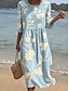Mulheres Vestido midi Vestidos Para o Verão Vestido de verão Férias Casual Boho Praia Feriado Normal Floral Gráfico Manga 3/4 Gola Redonda Azul Rosa Roxo Verde Verão Primavera