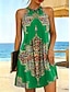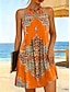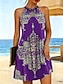 Mulheres Vestido no Joelho Vestido A Line Vestido de verão Férias Casual Normal Gráfico Boho Paisley Damasco Sem Manga Halter pescoço Vermelho Roxo Laranja Verde Verão Primavera