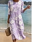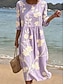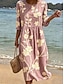 Mulheres Vestido Longo Vestido A Line Casual Praia Ajuste Largo Floral Gráfico Manga Curta Decote V Rosa Roxo Verde Verão Primavera