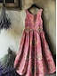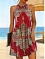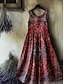 Mulheres Vestido no Joelho Vestido Boho Vestidos Para o Verão Vestido casual vestido étnico Elegante Boêmia Férias Praia Feriado Encontro Ajuste Largo Floral Gráfico Sem Manga Gola Redonda Vermelho