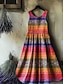 Vestido Maxi Boho Feminino Vestido de Verão em A Vestido Slip Férias Casuais Praia Ajuste Regular Gráfico Ombre Étnico Sem Mangas Gola V Alça Fina Azul Roxo Laranja Verde Verão Primavera Outono