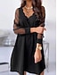 Mulheres Minivestido Vestido A Line Casual Diário Normal Tecido Manga Longa Decote V Preto Primavera Outono