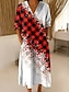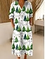 Natal Mulheres Vestido midi Vestido de turno Férias Casual Para Noite Ajuste Largo Gráfico Árvore de Natal Manga Longa Decote V Branco Vinho Vermelho Verde Outono Inverno