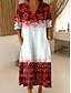 Mulheres Vestido midi Vestidos Para o Verão Férias Casual Estilo Praia Diário Para Noite Ajuste Largo Gráfico Tribal Manga Curta Decote V Rosa Roxo Verde Verão