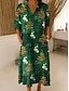 Mulheres Vestido midi Vestido de turno Casual Diário Normal Floral Gráfico Meia Manga Lapela Verde Escuro Azul Verde Verão Primavera