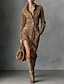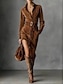 Mulheres Minivestido Vestido da bainha Casual Boho Diário Feriado Para Noite Tecido Manga Longa Lapela Castanho Claro Marron