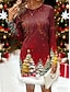Natal Mulheres Minivestido Vestido da bainha Casual Festa Diário Normal Árvore de Natal Floco de Neve Manga Longa Gola Redonda Vermelho Azul Céu Roxo Outono Inverno