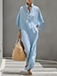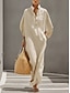Mulheres Vestido Longo Vestidos Para o Verão Vestido casual Férias Casual Boho Praia Festa Encontro Ajuste Largo Tecido Meia Manga Colarinho Chinês Azul Bege Verão Primavera