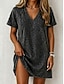 Mulheres Minivestido Vestido lavado 100% Algodão Vestido casual Vestido T shirt Básico Clássico Diário Férias Ajuste Largo Tecido Manga Curta Decote V Preto Verão Primavera