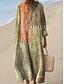 Vestido Maxi Feminino Linho Semelhante Respirável Leve Kaftan Manga 3/4 Colarinho Redondo Casual Vestido Boho Diário Férias Encontro Gráfico Geométrico Amarelo Azul Roxo Primavera Outono