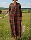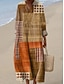 Mulheres Vestido Longo Camisetão Vestido casual Moda Básico Moderno Diário Ao ar livre Praia Normal Xadrez Manga 3/4 Decote V Laranja Verão Primavera
