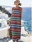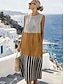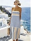 Mulheres Vestido Longo Vestido A Line Vestido de decote Férias Casual Ao ar livre Para Noite Ajuste Largo Listra Sem Manga Decote V Azul Verão Primavera