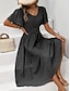 Mulheres Vestido midi Vestidos Para o Verão Férias Casual Estilo Praia Diário Para Noite Ajuste Largo Gráfico Listra Manga Curta Decote V Cinza Verão