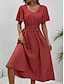 Mulheres Vestido midi Vestidos Para o Verão Vestido A Line Férias Casual Estilo Praia Para Noite Ajuste Largo Gráfico Geométrica Manga Curta Decote V clarete Laranja Branco gasto Cinzento Escuro Verão
