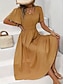 Mulheres Minivestido Linho de algodão sintético Camisetão Vestido Kaftan Vestido casual Moda Moderno Diário Praia Final de semana Normal Geométrica Manga Curta Colarinho de Camisa Cáqui Verão